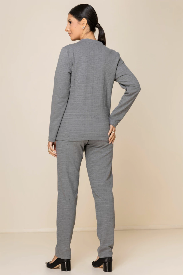 O Conjunto Jacquard é perfeito para momentos casuais ou mais elegantes. Sem perder o conforto, é uma peça prática, pois o look já vem completo, pronto para vestir. Fácil, rápido, versátil, para quem gosta de se vestir bem.